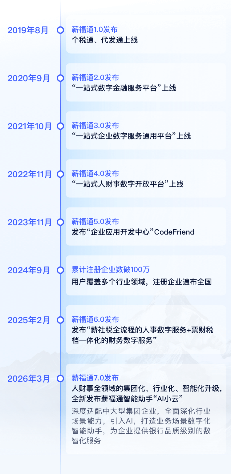 从2019年8月薪福通1.0发布到2026年3月薪福通7.0上线,招商银行薪福通逐渐成长为“一站式人财事数字开放平台”