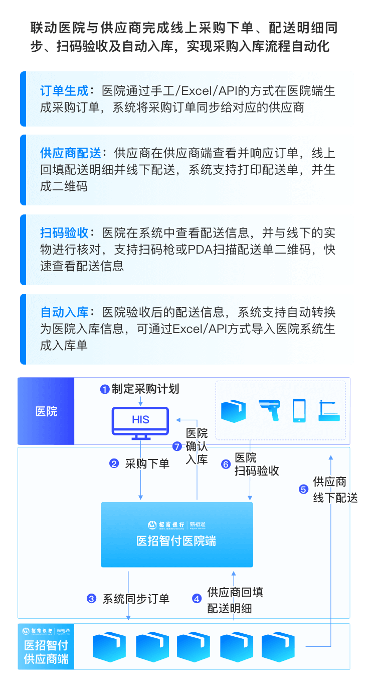 打通医院“入库、结算、支付”三环节,实现
